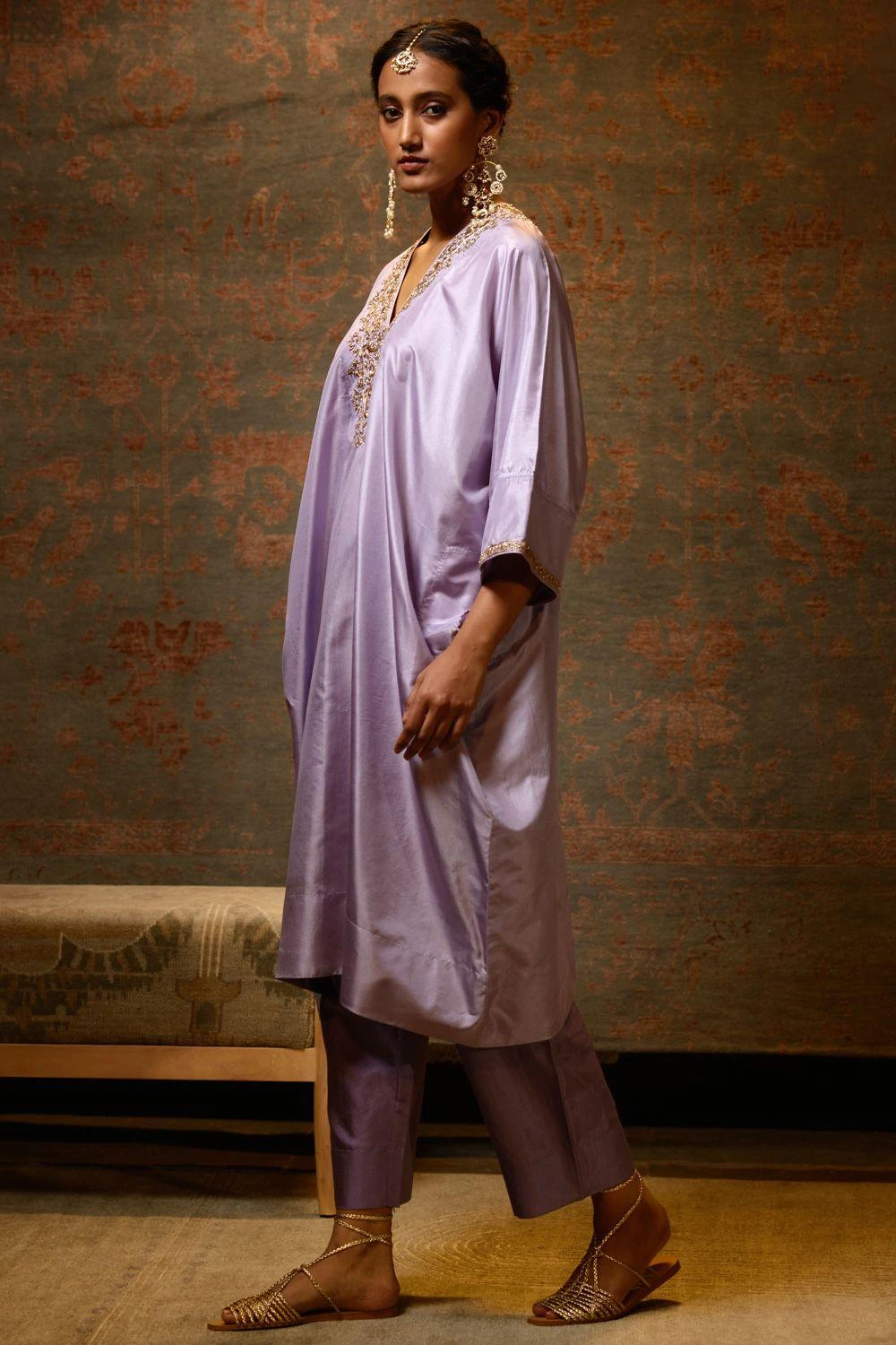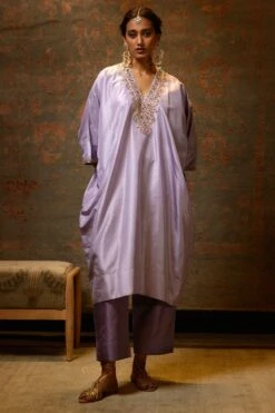 Immerse yourself in elegance with this hand embellished tunic set. Intricate craftsmanship meets contemporary style, making this ensemble a captivating choice for any occasion.
