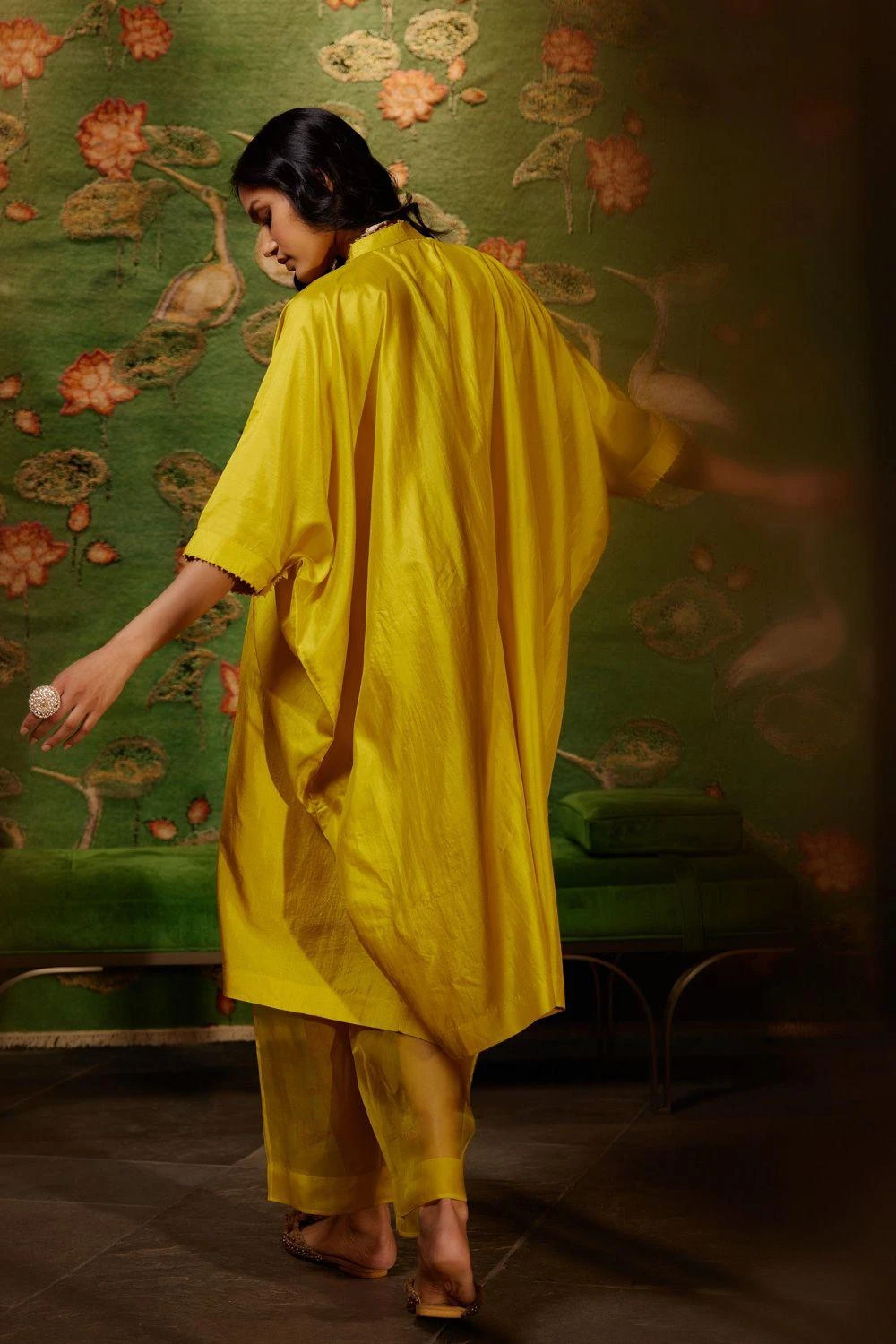Immerse yourself in elegance with this hand embellished kaftan set. Intricate craftsmanship meets contemporary style, making this ensemble a captivating choice for any occasion.