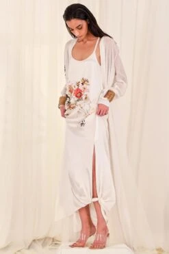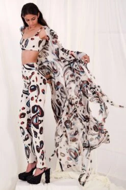 AK-OK By Anamika Khanna Elegant White Floral Printed Silk Co-ord Set