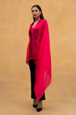 AK-OK By Anamika Khanna Blue Printed Drawstring Cape With Trousers