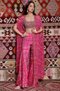 Ritika Mirchandani Pink & Gold Geometric Embellished Jacket Set