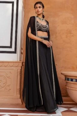 Saaksha & Kinni Black Abstract Printed Mirror Embellished Cape Set
