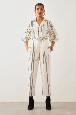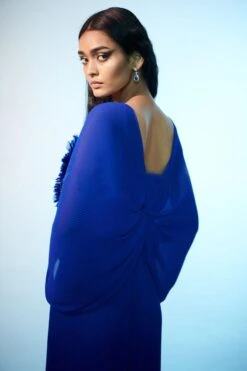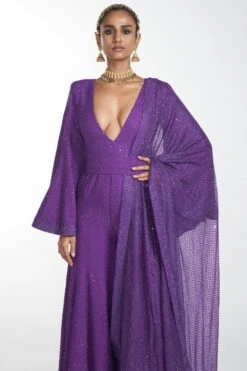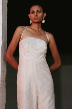 Elevate your summer wardrobe with this steel blue linen jumpsuit. Its V neckline, back zip opening, and flared bottoms exude timeless elegance, promising a chic and sophisticated look.