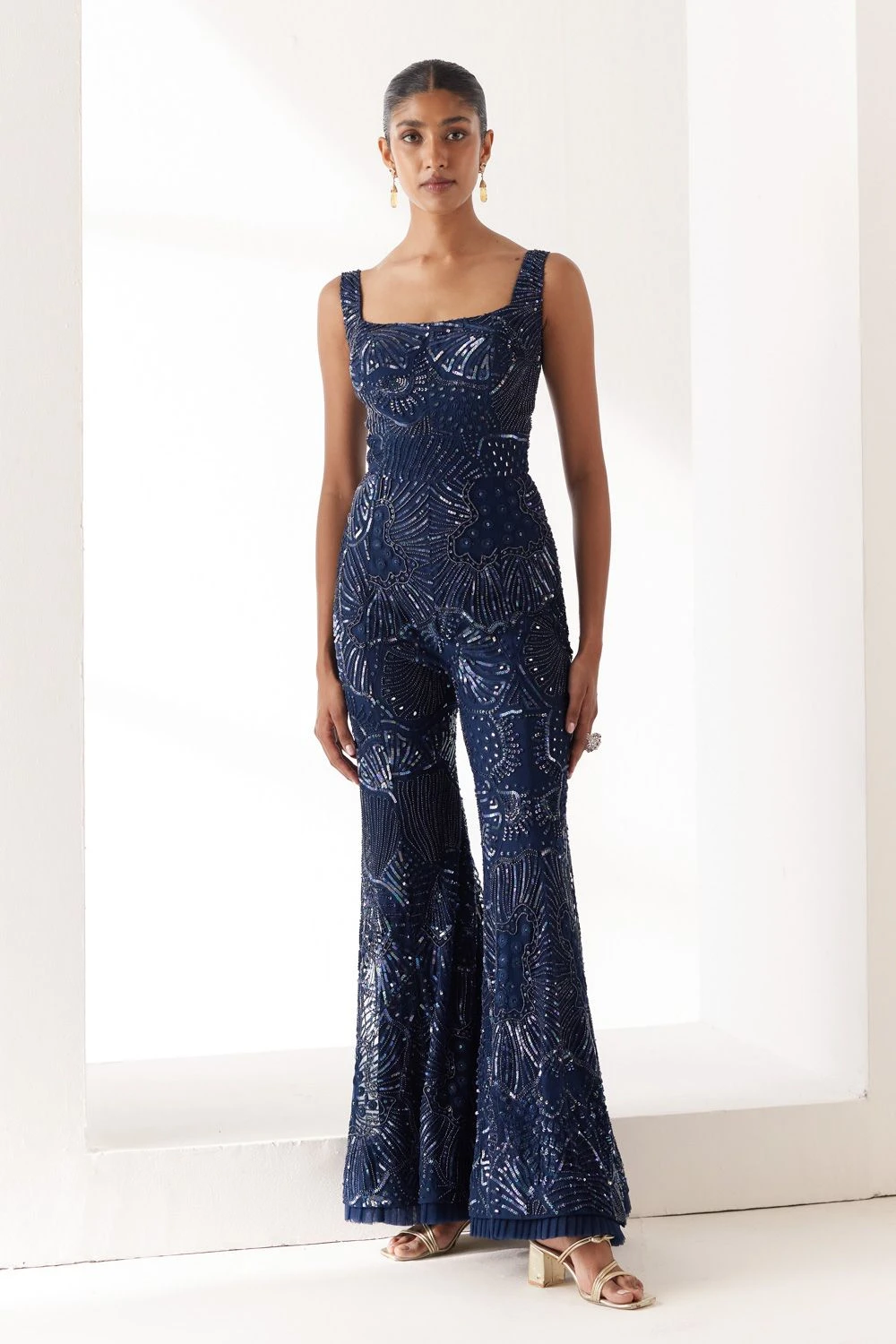 Step into opulent elegance with this embroidered jumpsuit. This ensemble is a testament to the perfect fusion of intricate craftsmanship and modern sophistication, setting the stage for a remarkable look.