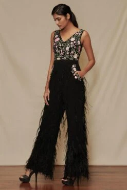Immerse yourself in the world of exquisite fashion with this jumpsuit featuring a beautifully smocked bodice, epitomizing refined elegance. The tie back detail adds a touch of sophistication, while the side pockets provide both functionality & style.