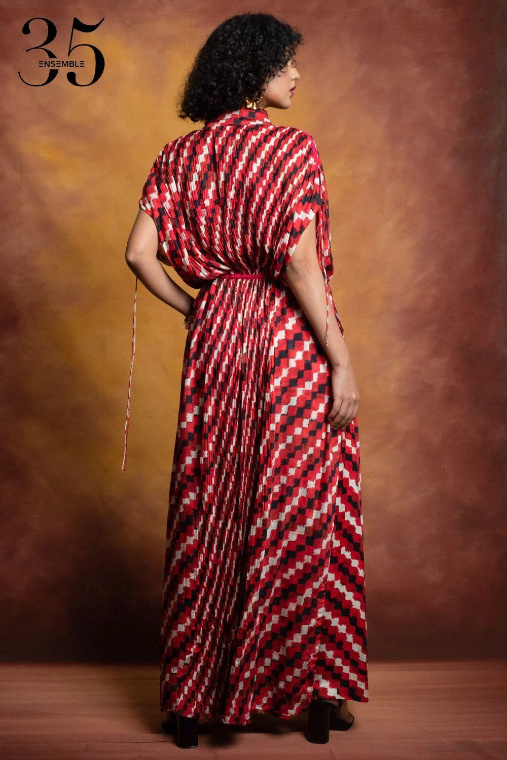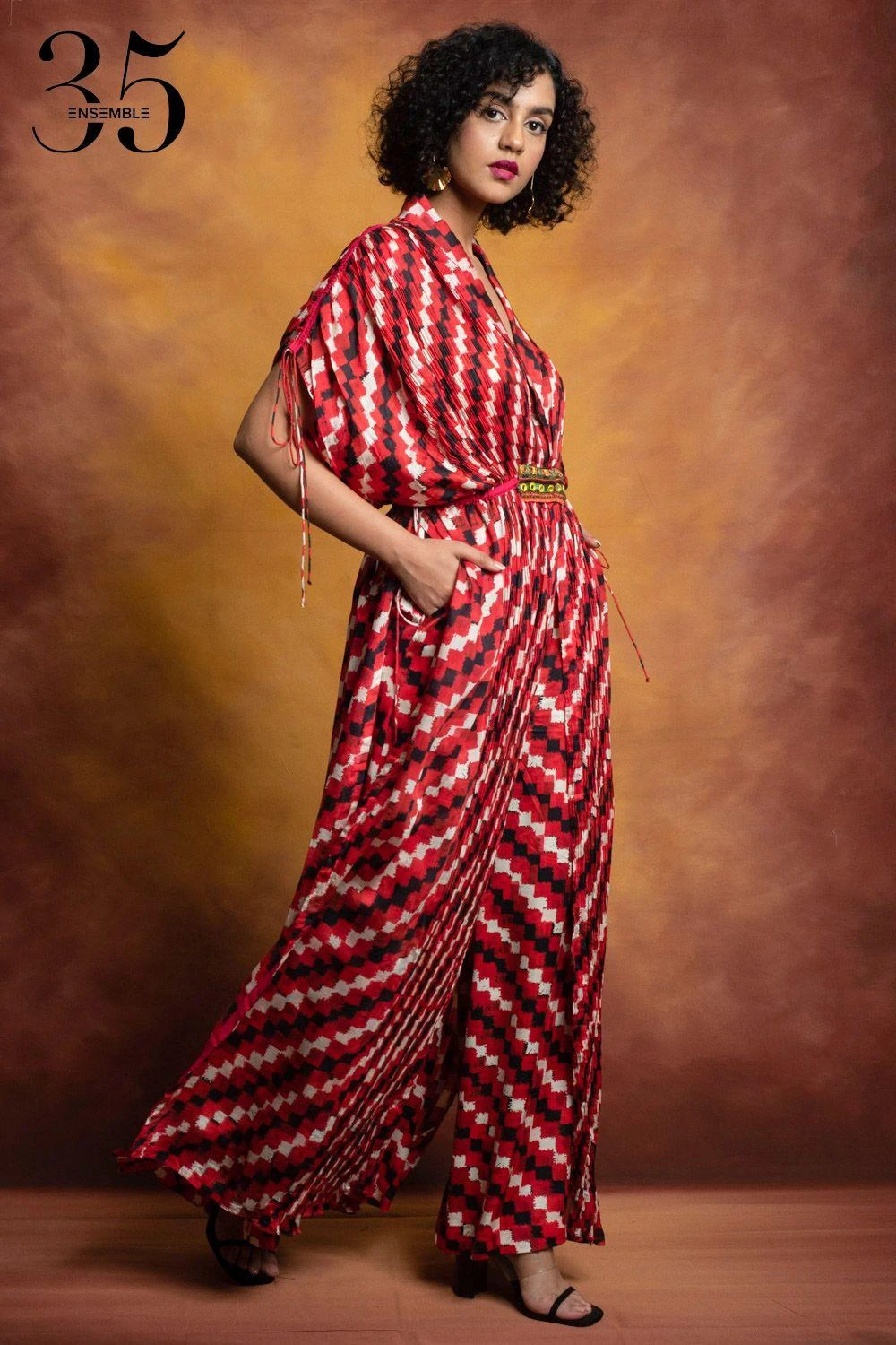A yearlong celebration of its 35th anniversary telling the story of modern Indian fashion. Add a layer of glamour & statement style to your resort getaways with this kaftan. It features a floral print with a lapel collar & an embellished waist.
