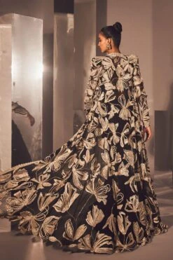 Ritika Mirchandani Black & Gold Floral Embellished Jacket Set
