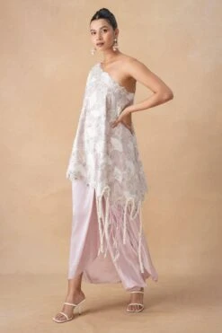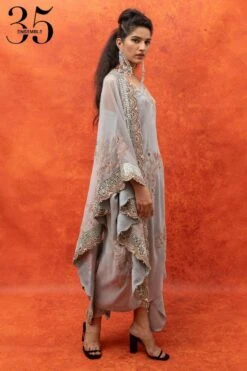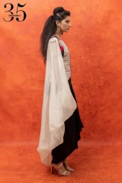 Anamika Khanna Ivory Floral Sequin Embellished Cape Skirt Set