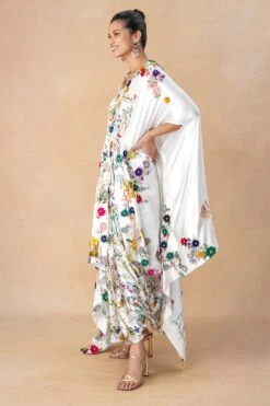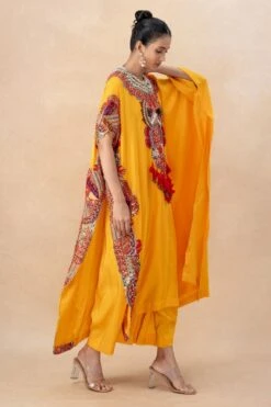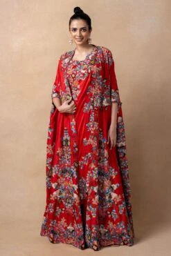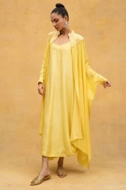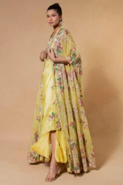 Anamika Khanna Yellow Thread Embroidered Chiffon Cape & Dress