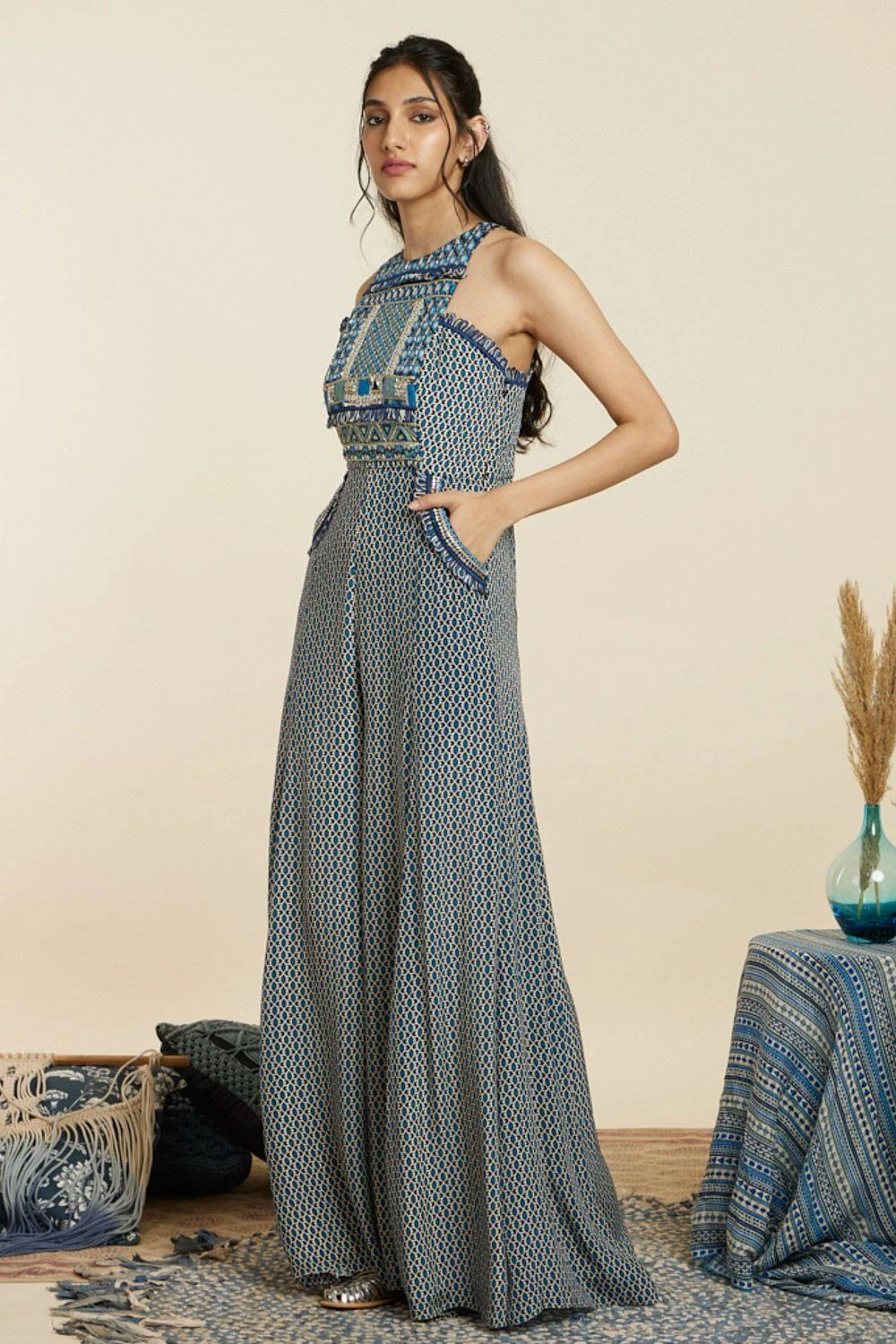 Step into opulent elegance with this abstract printed jumpsuit. Setting the stage for an amazing look, this ensemble is a nod to the seamless meticulous craftsmanship with modern refinement.