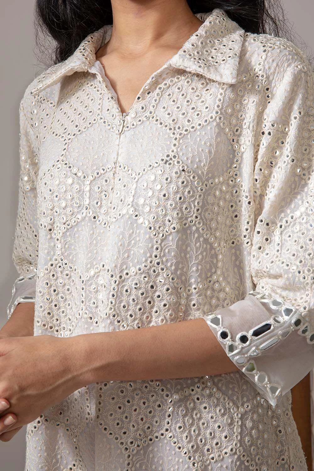 Embroidery : Hand embroidered mirrorwork & beadwork