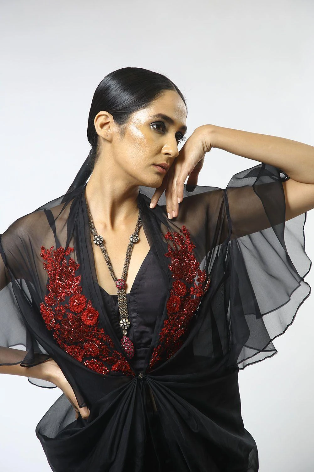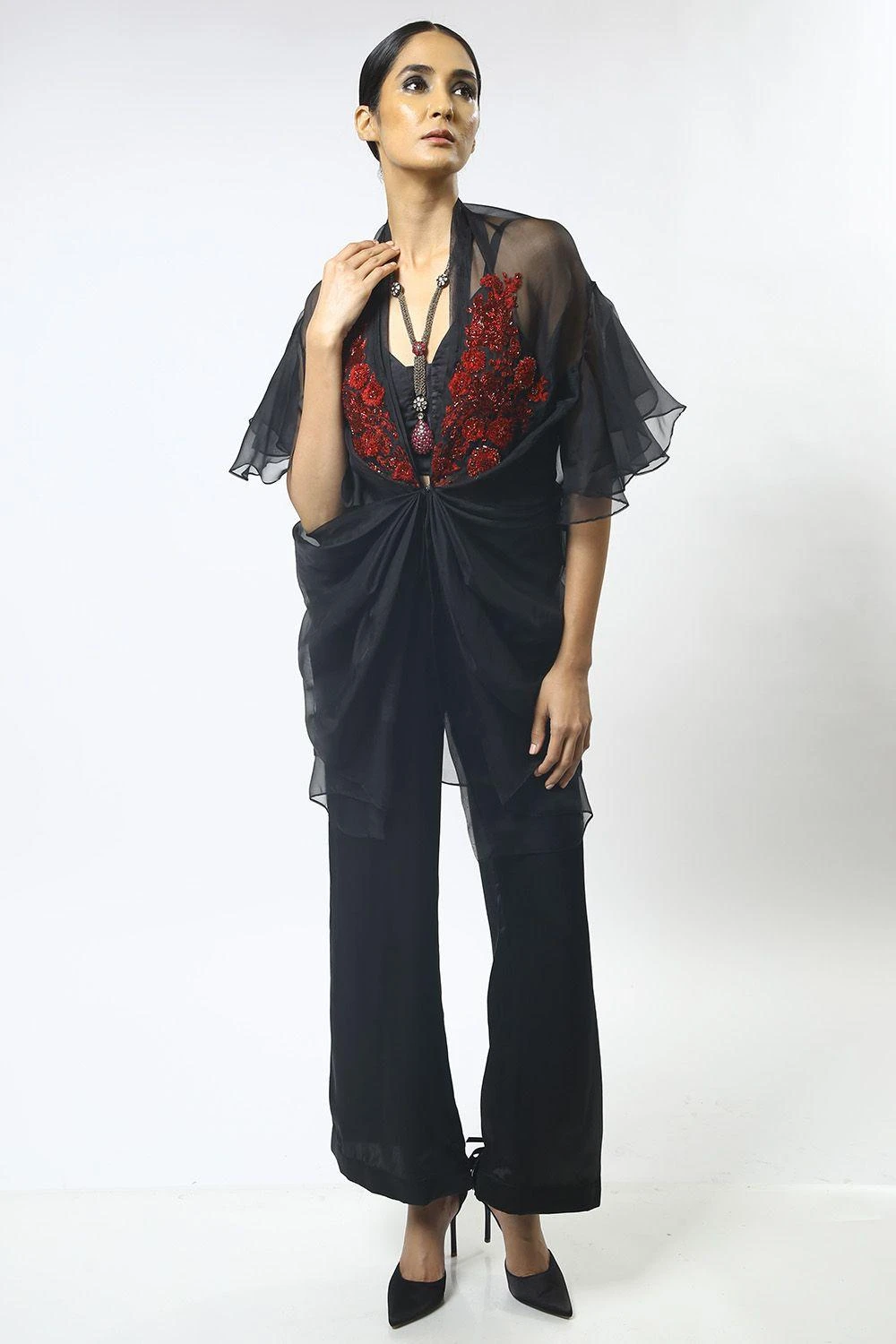 Material/Fabric : Cape- silk organza, bustier & pants- velvet
